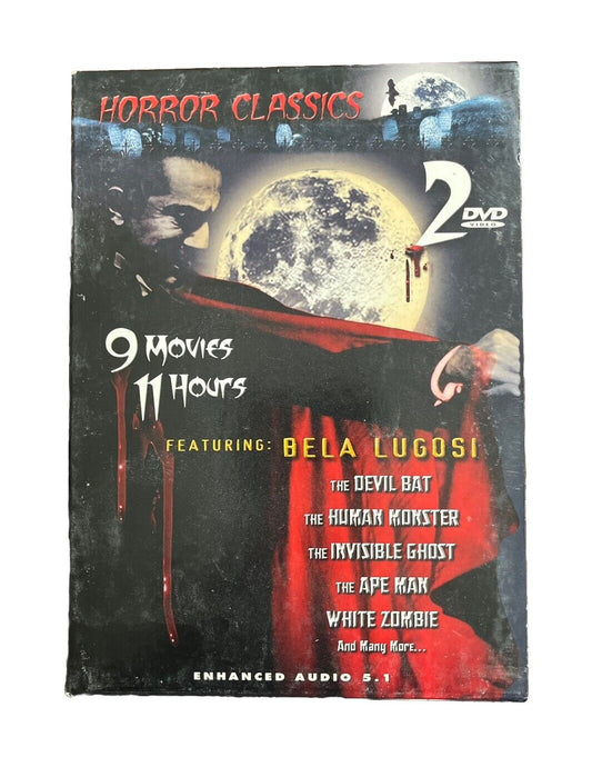 Vintage Collectable HORROR CLASSICS 9 Movies 11 Hours Bela Lugosi 2 DVDs