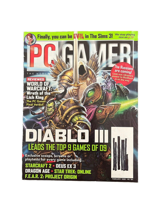FEBRUARY 2009 PC GAMER #184 video game magazine - DIABLO III - Demo Disc