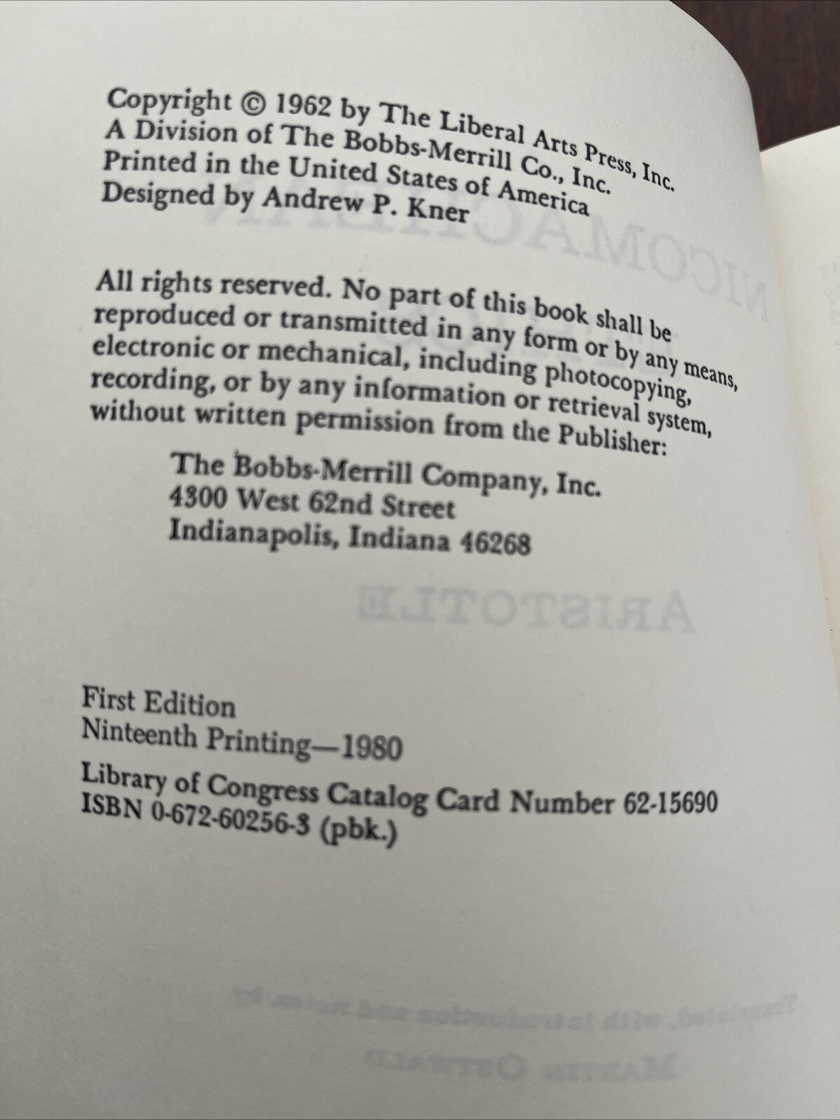 Explore the foundations of ethics and moral philosophy with "Nicomachean Ethics," a classic work by Aristotle, translated by Martin Osteald. Published in 1962 by Macmillan Company, Incorporated, this trade paperback offers an insightful look into ancient Greek philosophy, providing readers with a rich understanding of the genre.