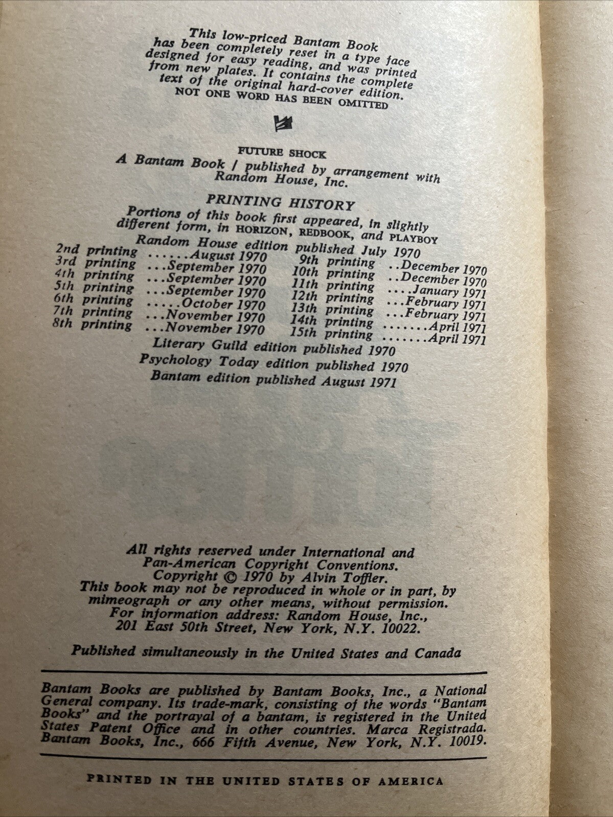 Classic Collectable Science Fiction Book Future Shock by Alvin Toffler