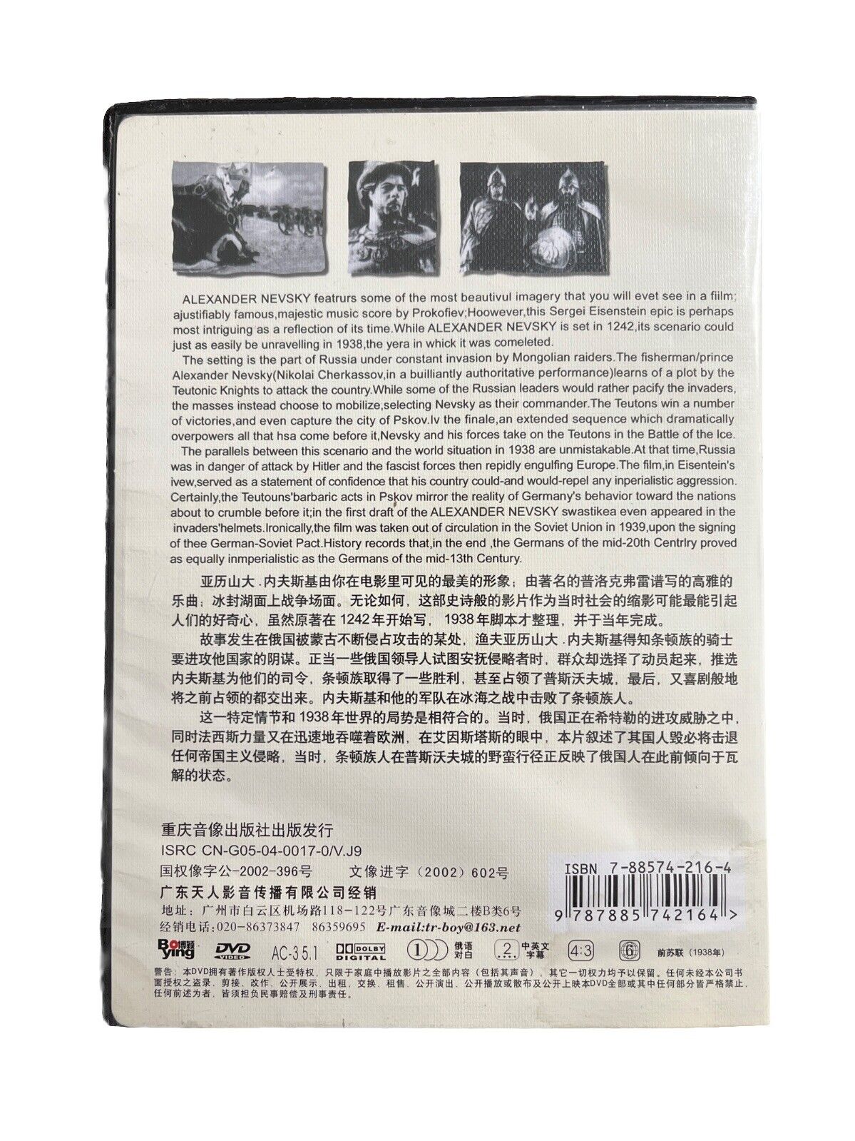 The DVD is presented in its original black and white, enhancing the nostalgic experience of a bygone era. It is formatted for full screen viewing and supports Region Code 0, making it playable on DVD players worldwide. Whether you're a film aficionado or a history buff, "Alexander Nevsky" is a timeless addition to your movie collection.