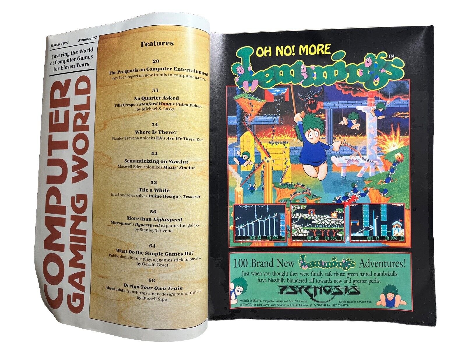 This is the March 1992 issue (#92) of Computer Gaming World magazine, published by Golden Empire Publications. The cover story features Aces of the Pacific from Dynamix. This monthly publication offers articles on computers, the Army, war, video games, action & adventure, and computer & IT topics. It includes illustrations and is written in English. The ISSN is 0744-6667.