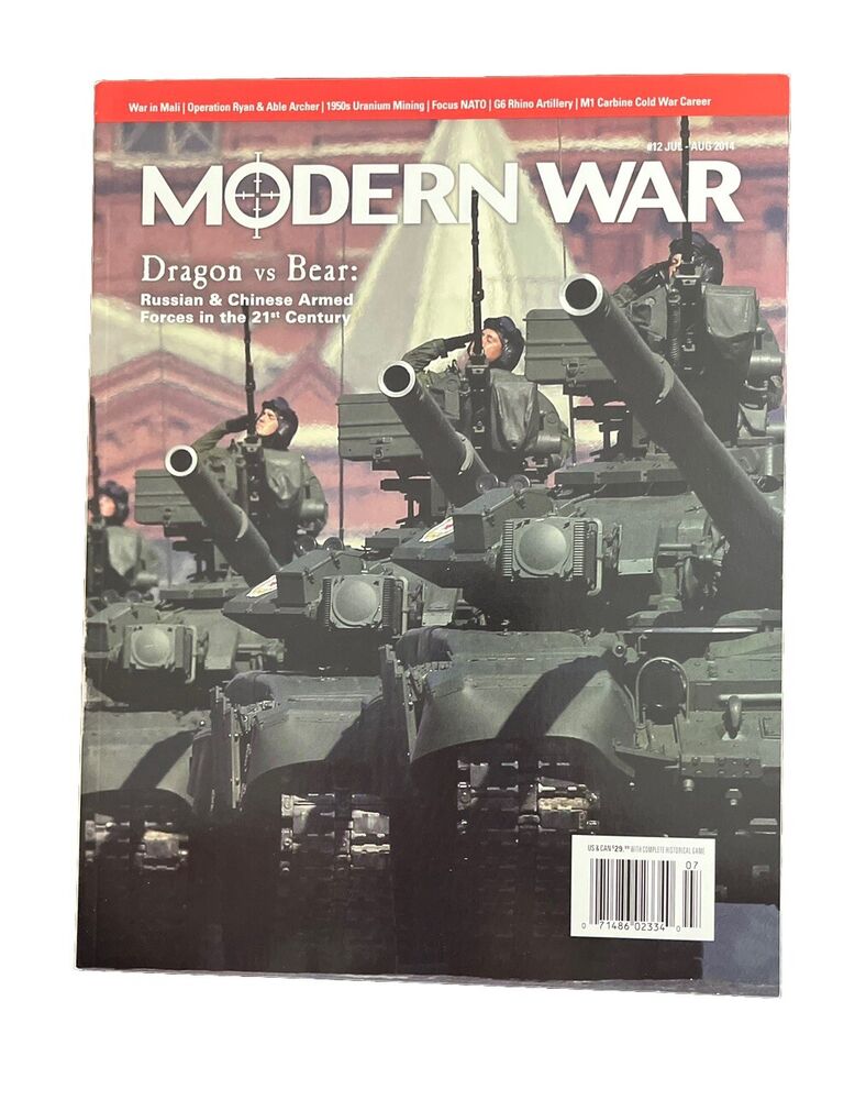 This Decision Games Modern War Magazine #12 comes with a tabletop game featuring Dragon vs. Bear. The magazine is in English and was published in July and August of 2014. It is a board game and is part of the Contemporary Manufacture category under Toys & Hobbies and Games. The game type is a war theme and includes topics such as Army, War, and Military. The magazine is illustrated and covers a genre of Games, Activity, History, and Action & Adventure. The brand is Decision Games and the issue number is 12. This magazine is a great addition to any collection for those interested in war-themed board games.