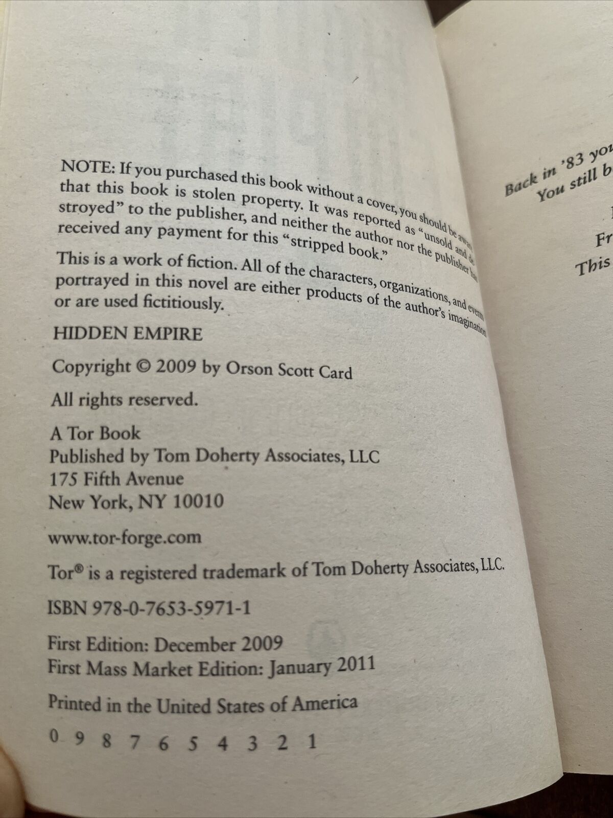 Empire Ser.: Hidden Empire by Orson Scott Card (2011, Paperback)