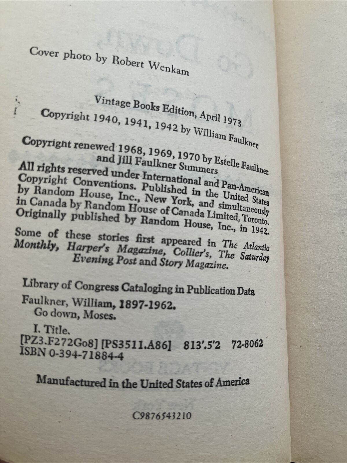 Go Down, Moses by William Faulkner (1973, Vintage Books Edition, V884)
