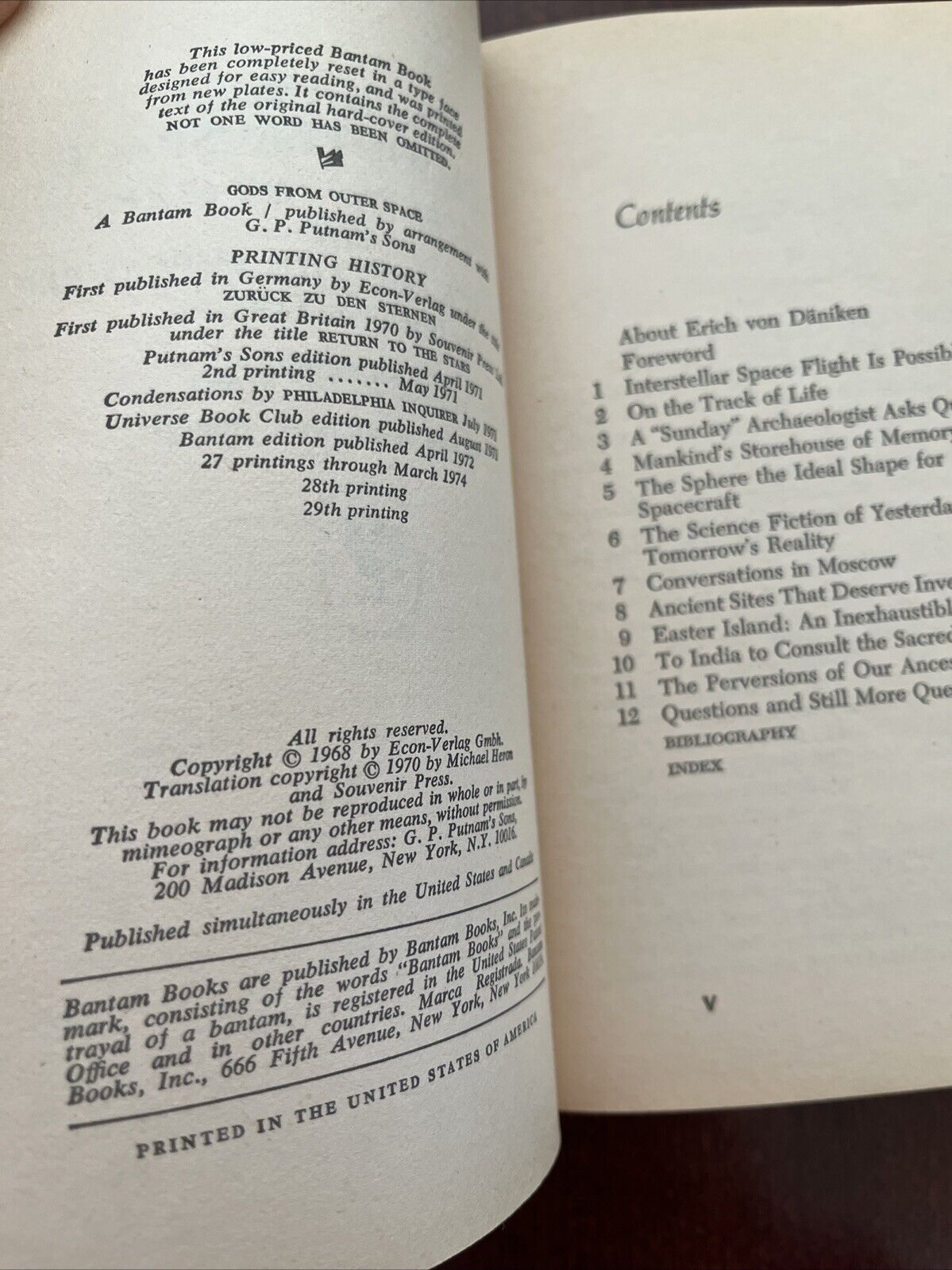 GODS FROM OUTER SPACE Erich Von Daniken Bantam Paperback Ed 1972 Ancient Aliens
