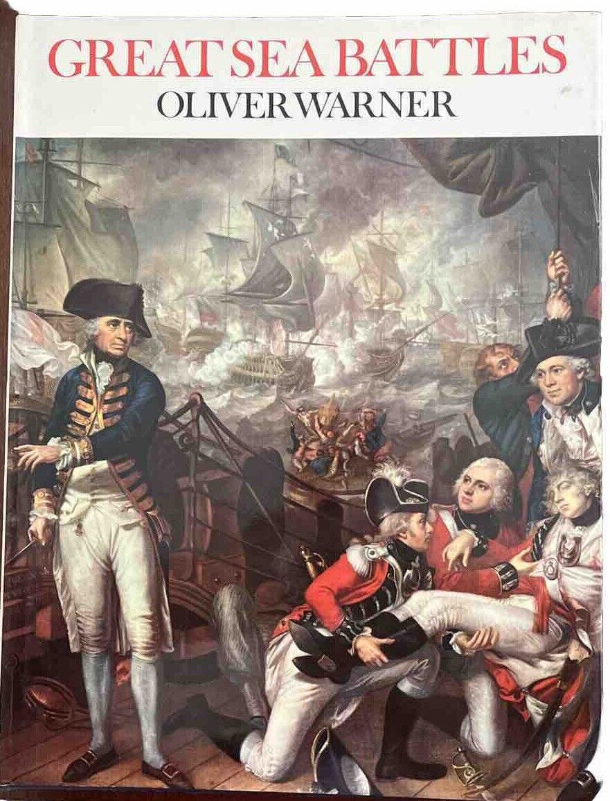 This is a great vintage hardcover book titled "Great Sea Battles" by Oliver Warner. It is a part of the historical book series and is a nonfiction narrative type. The book is in English and was published in 1968 by Hamlyn Publishing.