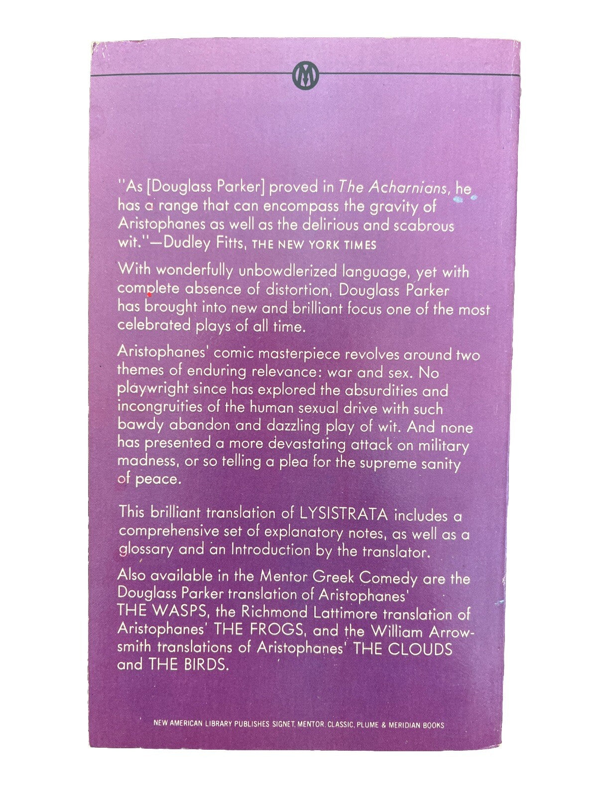 This book is a modern translation of the ancient Greek play "Lysistrata" by Aristophanes. The translation is by Douglass Parker and the book is published by New American Library. It is a softcover book with illustrated wraps and is written in English. The book falls under the topic of literature and fiction and would make a great addition to any collection of antiquarian and collectible books.