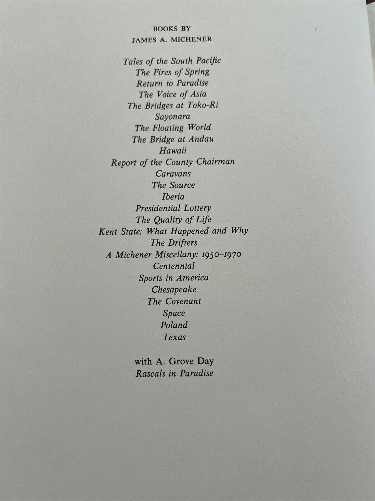 Texas A Novel by James A. Michener (1985 HC) Topic: Historical novel Book