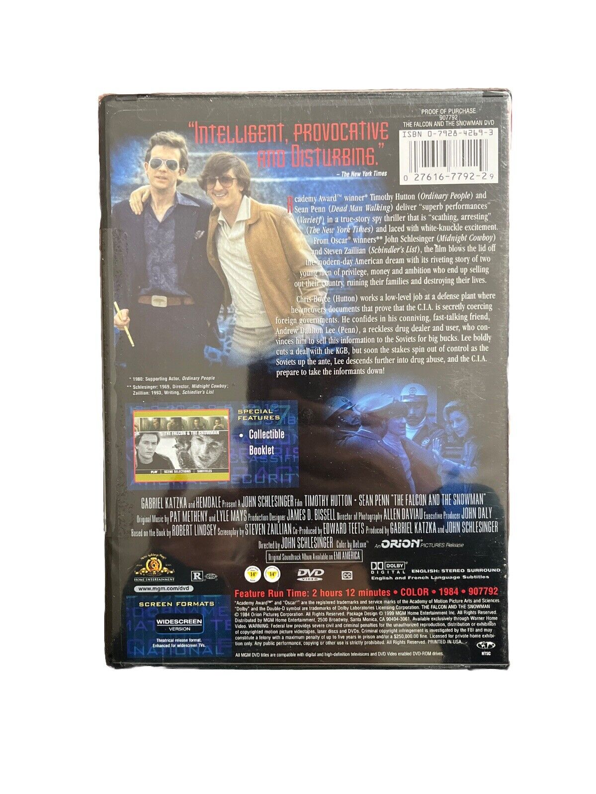 Experience the gripping tale of espionage and intrigue with "The Falcon and the Snowman" on DVD. This 1999 release from Contemporary Classics features an Academy Award-winning performance by Timothy Hutton and a powerful performance by Sean Penn, under the direction of John Schlesinger. The film is rated R and delves into the complex world of espionage, with a gripping storyline that will keep you on the edge of your seat.