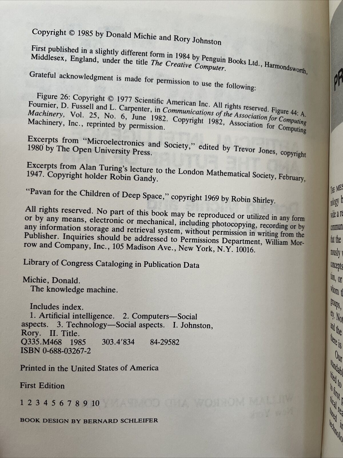 The Knowledge Machine Artificial Intelligence The Future of Man 1985 1st Ed