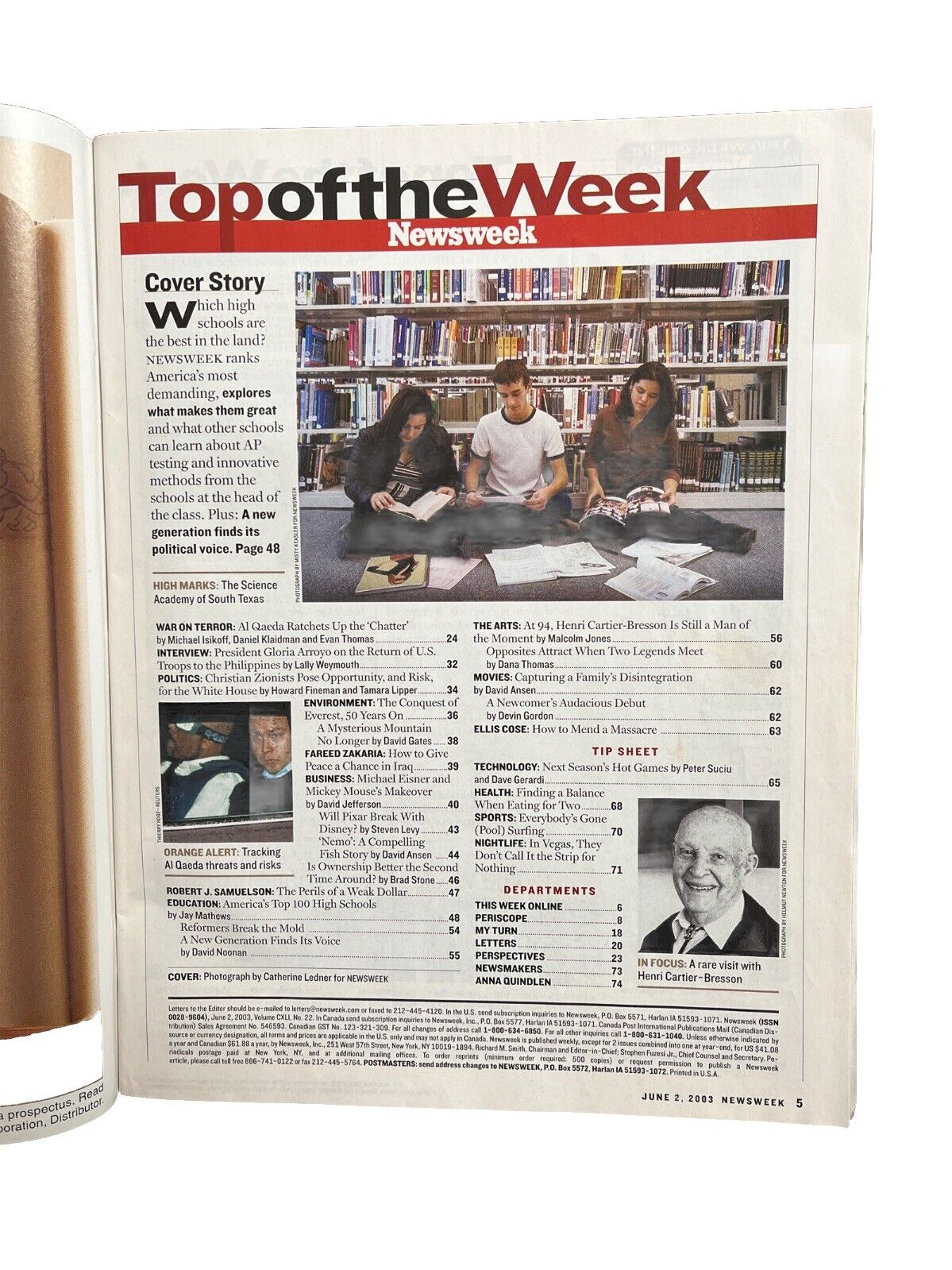 Delve into the pages of the June 2, 2003 edition of Newsweek Magazine, a collectible piece that offers a snapshot of America's best high schools, along with in-depth analysis of politics, celebrity, history, and entertainment trends. This issue is rich with content that captures the essence of the era's cultural zeitgeist, presented in English and manufactured in the United States.